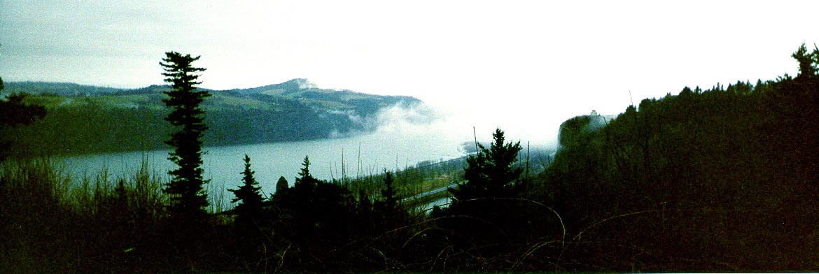 The rest area at Starvation Creek had been closed, so as we arrived we parked right alongside I-84. Shellrock Mt., located south of the Columbia River in Oregon, and Wind Mt., north of us in Washington, are both creeping towards the river ever-so-slightl