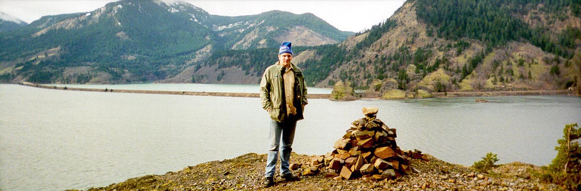Across the Columbia River from us (in the background of the above image) you can see a nice flat top section that is part of an intercanyon lava flow that came down the Salmon River and which essentialy filled up the channel of the river. The Salmon Rive r then had to cut a channel along one side of it, that being the west side of the flow where the river now comes out into Drano Lake. The edge of the intercanyon lava flow that